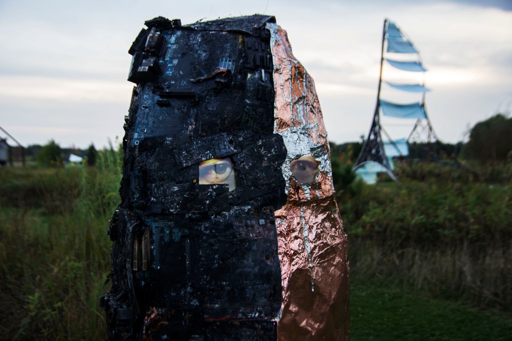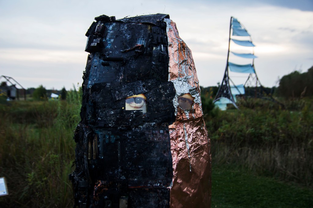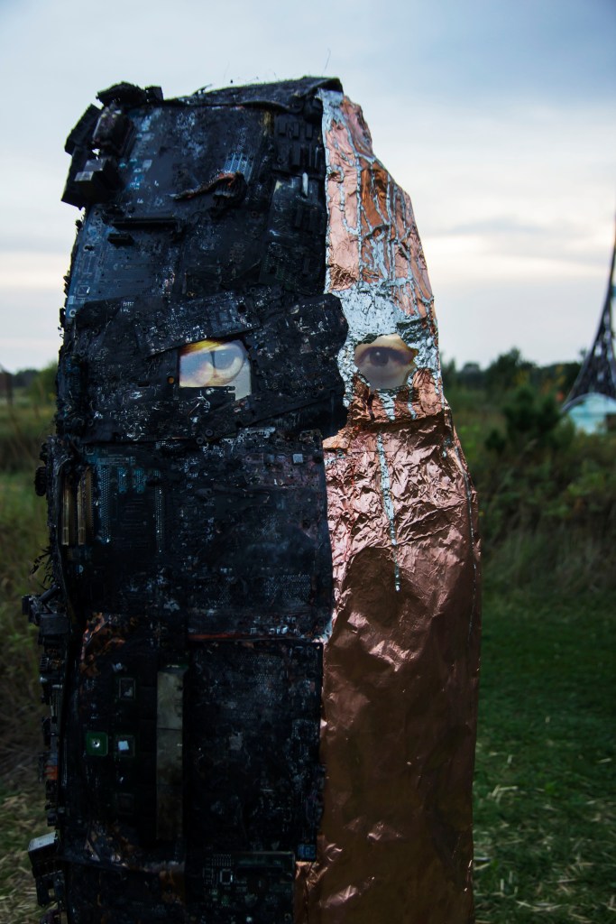 LCD screen, Electronics, Copper, Burned circuit board, Wood, Solder. 2’ x 6’ x 2’ (W x L x D). 2017