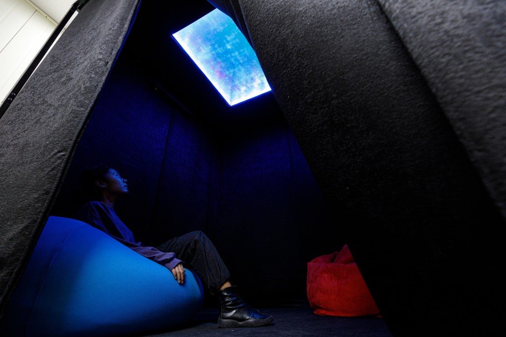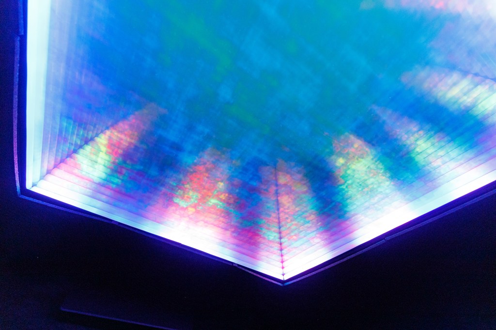 Cosmic rays are invisible, high-energy charged particles from outer space that penetrate our bodies and objects around us. Despite the fact that cosmic rays go through and around us endlessly, we do not see or recognize them. In this work, light changes are triggered by a muon detector which invites the viewers into a spiritual experience of deciphering a secret message from outer space, amidst the waves of rays that constantly surround our existence. ‘The One Shatters in the Air’ decodes cosmic rays to expose a certain element of the human and natural world that is invisible to the naked eye. By exposing what is already around the viewers, the works juxtapose a question that comes directly from the viewers themselves. With this process, the works provoke the viewers to be more conscious of our fragility as organic beings in a technological world.